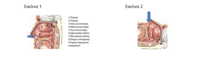 Ακριβώς η ίδια φιλοσοφία είναι και με τις ρινοπλύσεις. Οποιαδήποτε συσκευή χρησιμοποιούμε (αμπούλα, σύριγγα, ή άλλα συστήματα ρινοπλύσεων), η φορά του νερού θα είναι όπως αυτή του βέλους της εικόνας 1, για να κατευθύνει το νερό στο σημείο 9 που λιμνάζουν οι εκκρίσεις. Σε καμία περίπτωση δεν ασκούμε μεγάλη πίεση για να γίνει ο καθαρισμός, διότι πίσω από το σημείο 9, είναι το ανατομικό σημείο 8, που είναι το στόμιο της ευσταχιανής σάλπιγγας η οποία ενώνει τη μύτη του παιδιού με το αυτί. Η μεγάλη πίεση στη ροή του νερού, μπορεί να διανοίξει την ευσταχιανή, να περάσει νερό στο μέσο αυτί, να πονέσει το παιδί, να μετακινηθεί το τύμπανο προς τα έξω, να παραμείνει υγρό στο μέσο αυτί, ακόμα και να προκαλέσει στο παιδί συχνές ωτίτιδες.